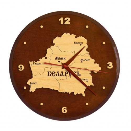 Уникальные сувенирные настенные часы , изготовленные из натурального дерева с кварцевым механизмом. На часы нанесены карта Республики Беларусь и аист с использованием технологии лазерной гравировки по дереву с напылением «под золото». Эти настенные часы будут идеально вписываться в интерьер вашего дома или офиса. Оригинальный, неповторимый и престижный подарок.