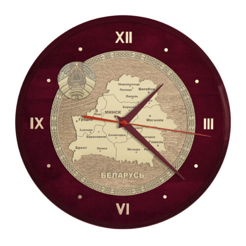 Уникальные сувенирные настенные часы , изготовленные из натурального дерева с кварцевым механизмом. На часы нанесены карта Республики Беларусь и аист с использованием технологии лазерной гравировки по дереву с напылением «под золото». Эти настенные часы будут идеально вписываться в интерьер вашего дома или офиса. Оригинальный, неповторимый и престижный подарок.