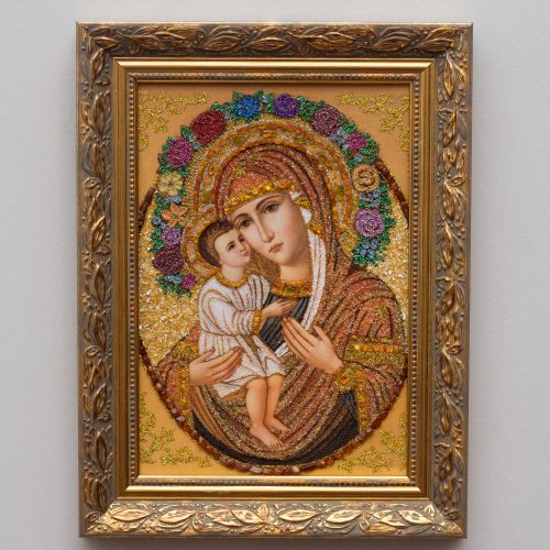 Жировичская икона Божией Матери выполнена из янтаря и янтарной крошки.