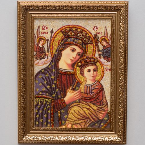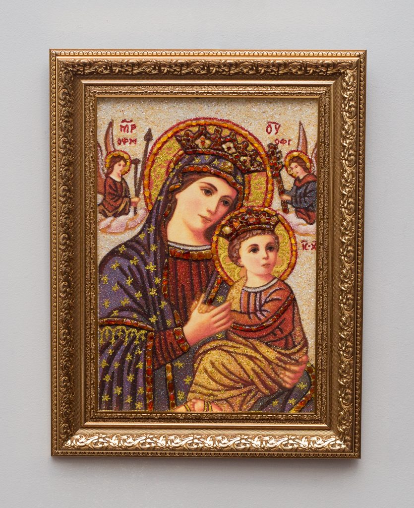 Икона выполнена из янтаря и янтарной крошки