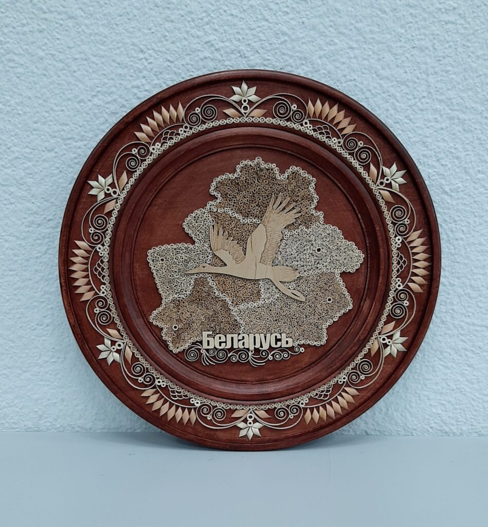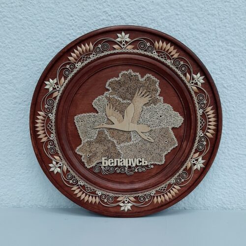 Рисунок выложен из стружки разных пород деревьев.